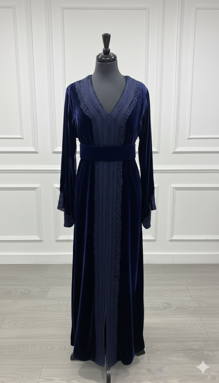 Caftan 1 pièce - brocard fleuri fait mains + ceinture Hrir