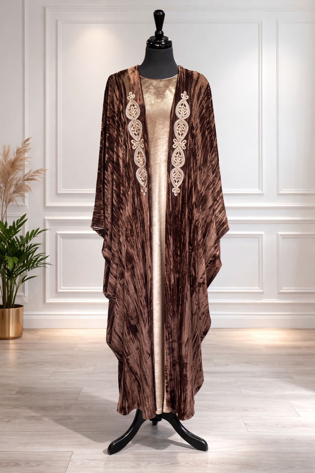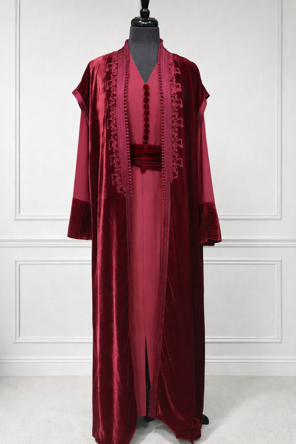 Kimono velours 2 pièces bordeaux: robe- kimono- mejdoul choucha