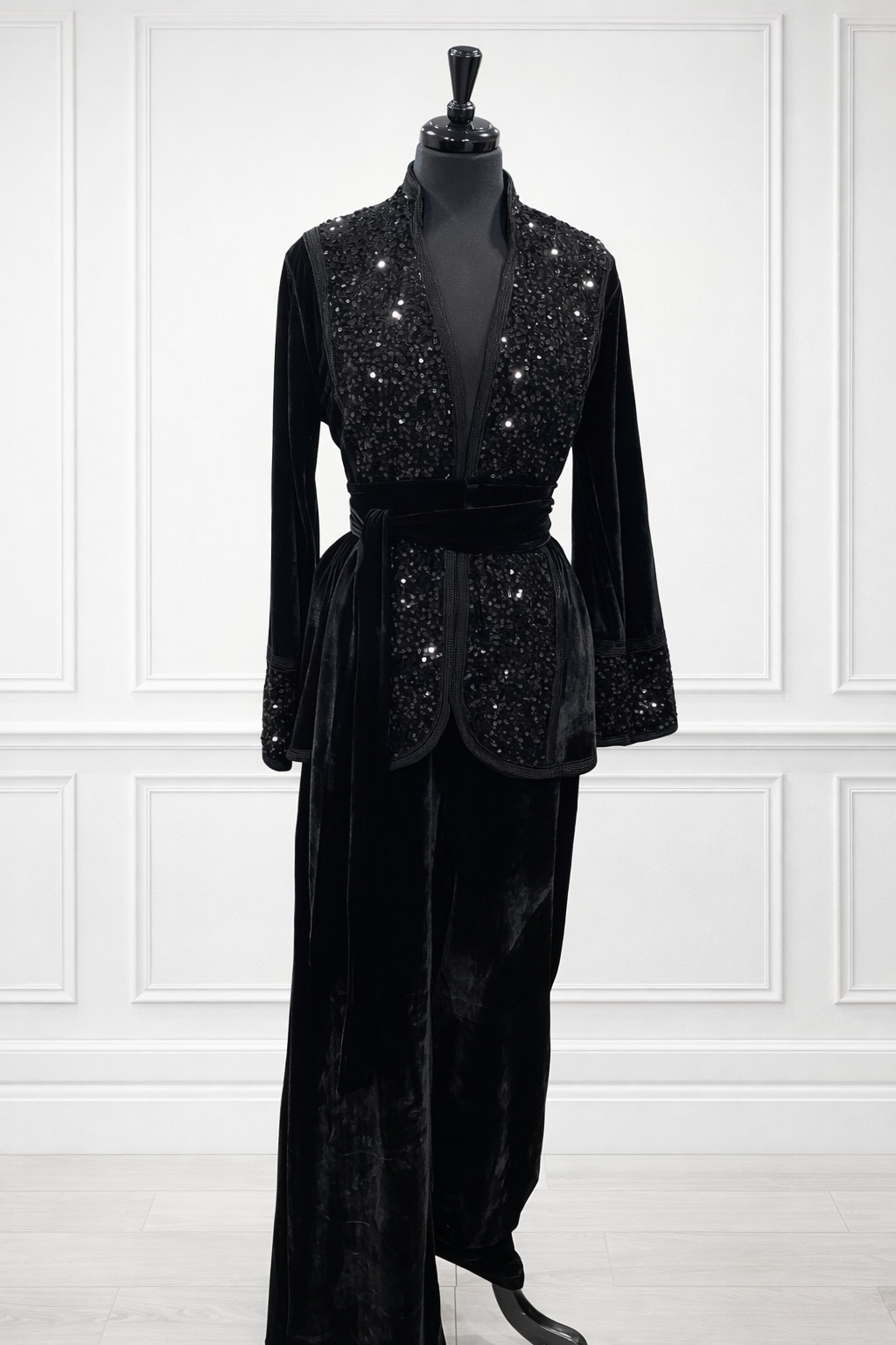 Ensemble kimono velours noir (veste+ pantalon) + ceinture