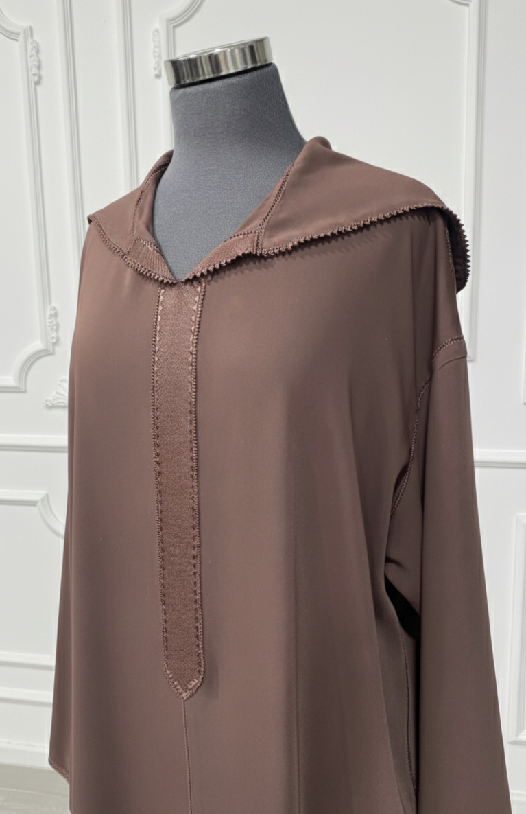 Djellaba crepe marron chocolat Randa Hssira