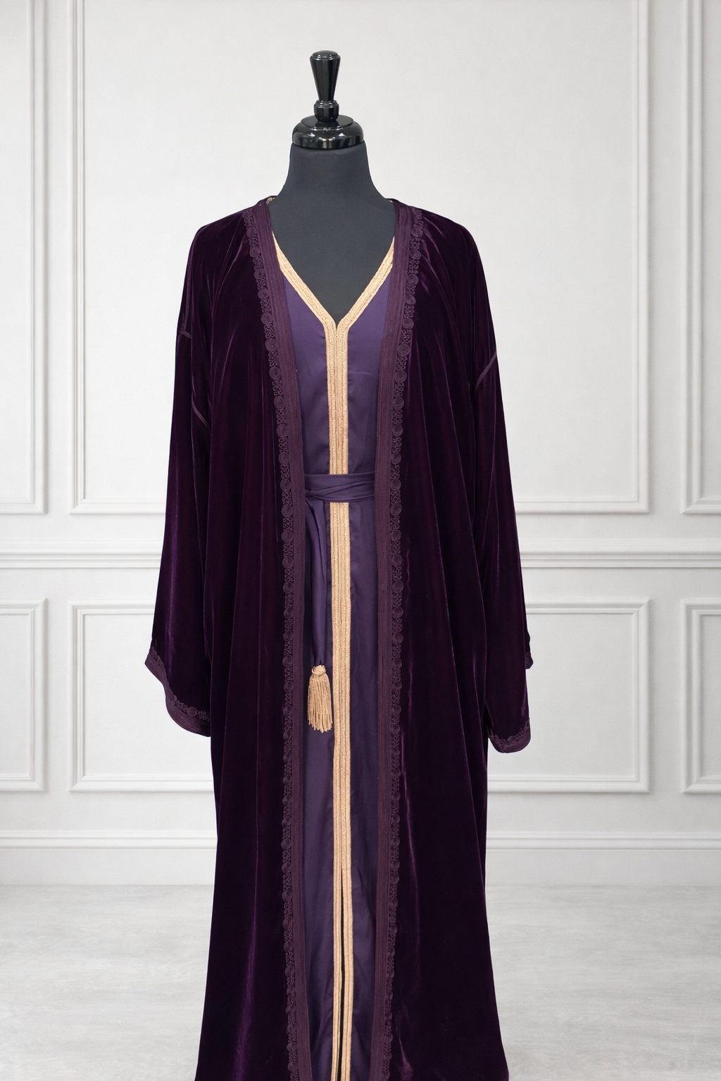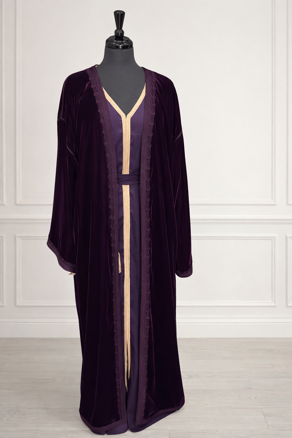 Kimono en velours violet - interieur satin + Robe + mejdoul