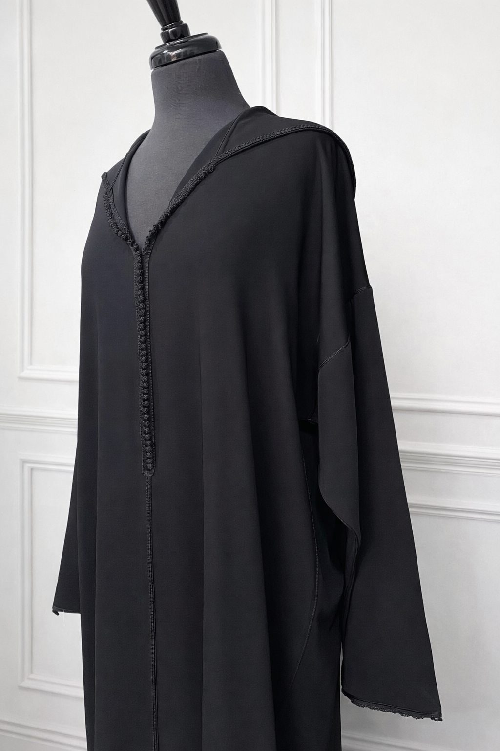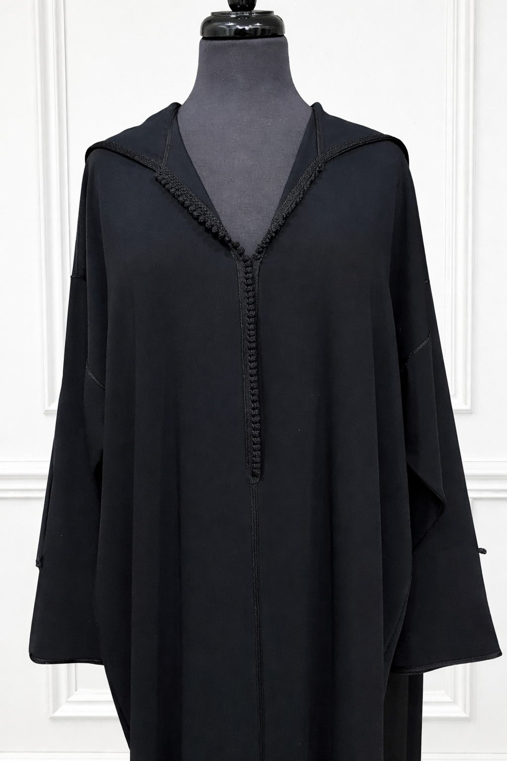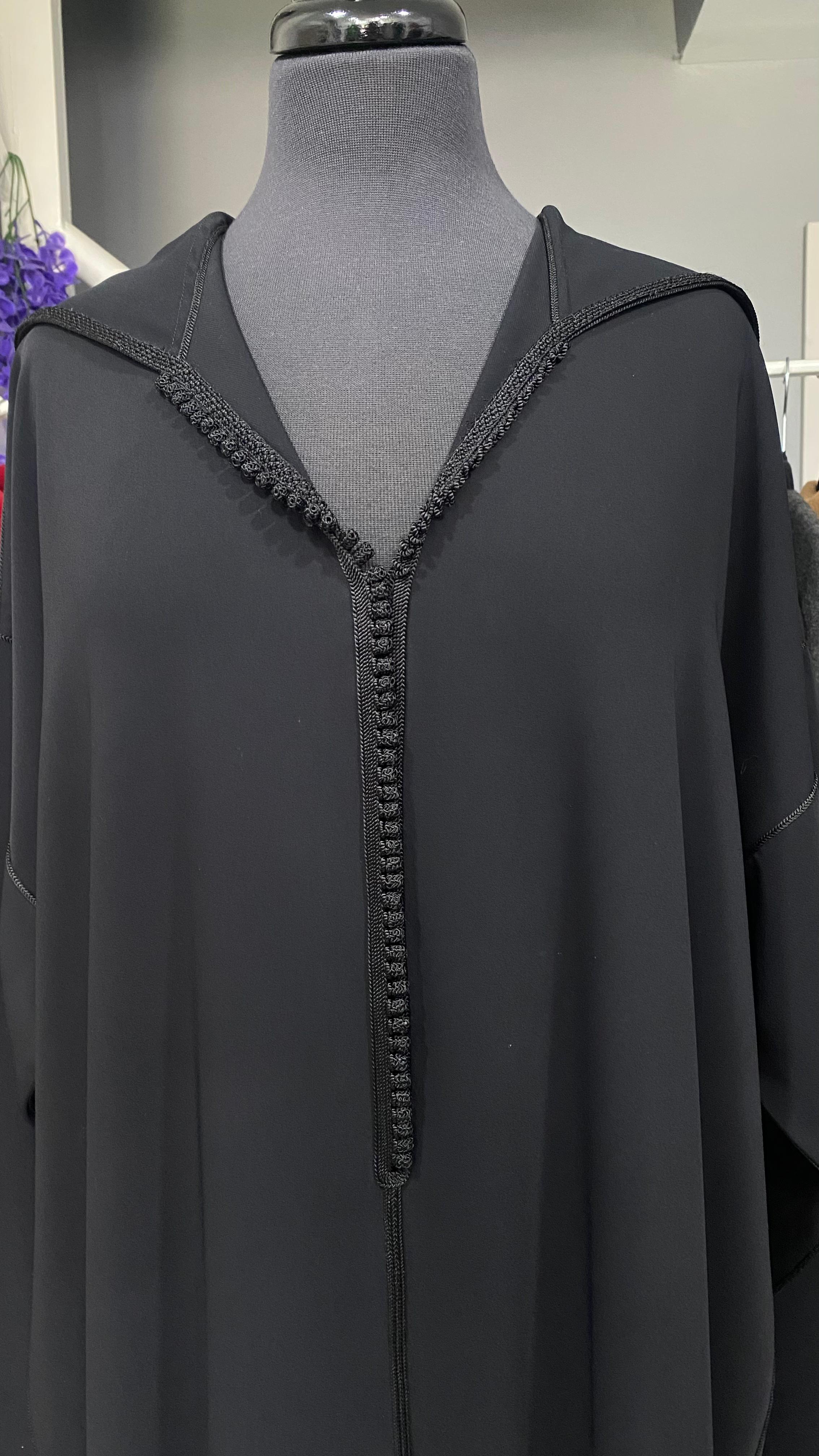 Djellaba crepe noire 39at avec bouton sur manche