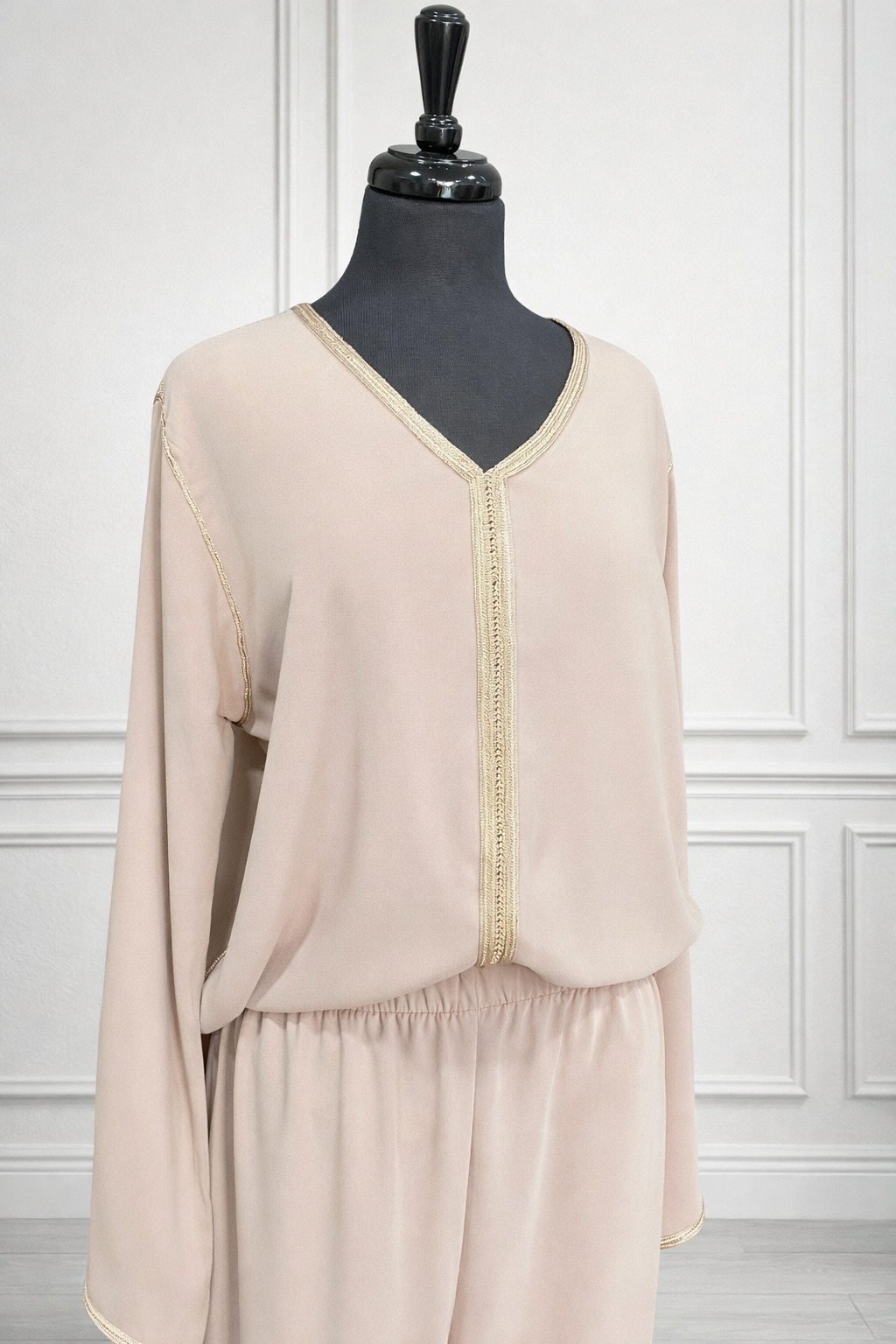 Ensemble: pantalon Kandrissa + chemisier manches longues noirs brodés en bronze
