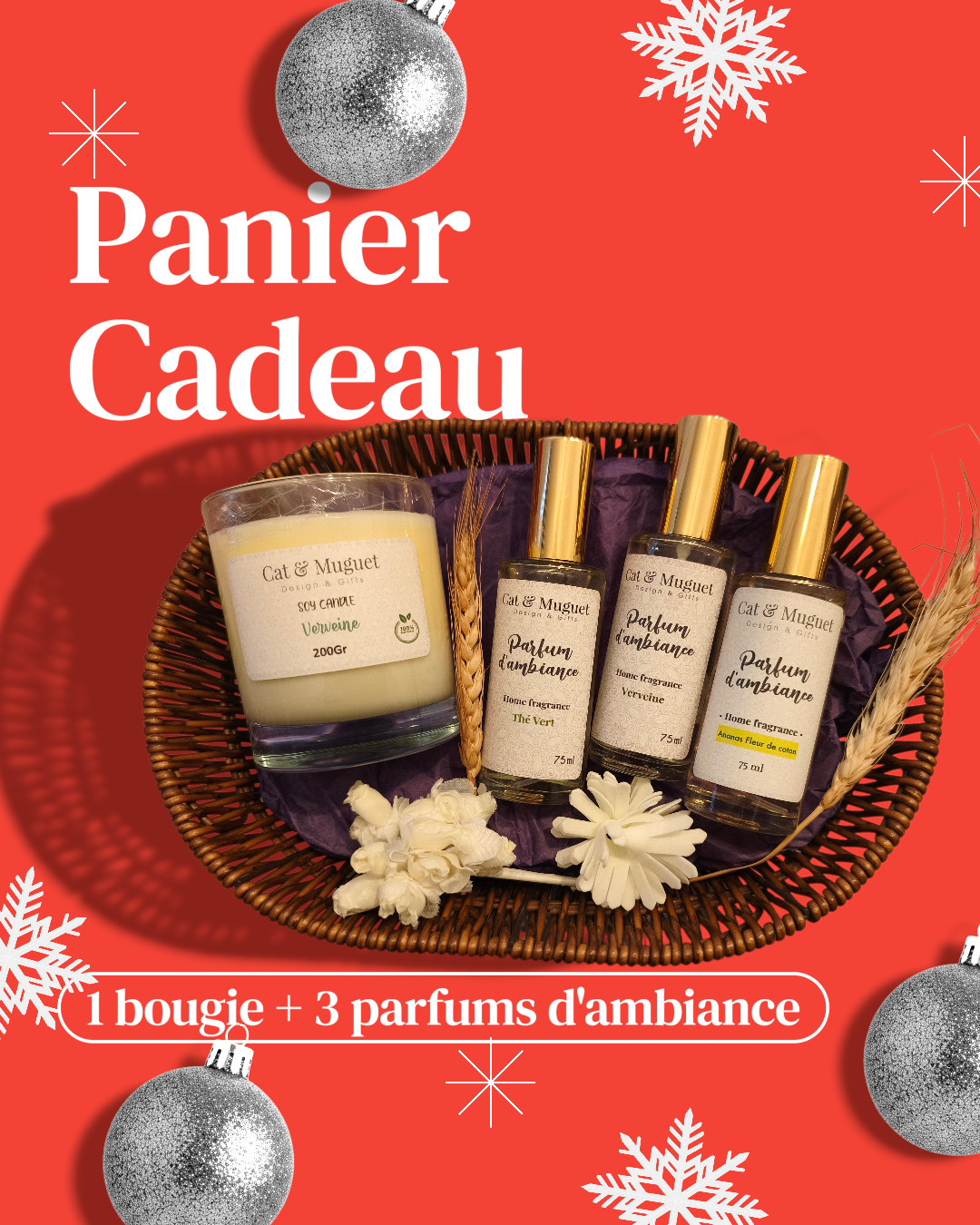 Le panier Rituel Parfumé: 1 bougie 200g +3 parfums d'ambiance 75ml