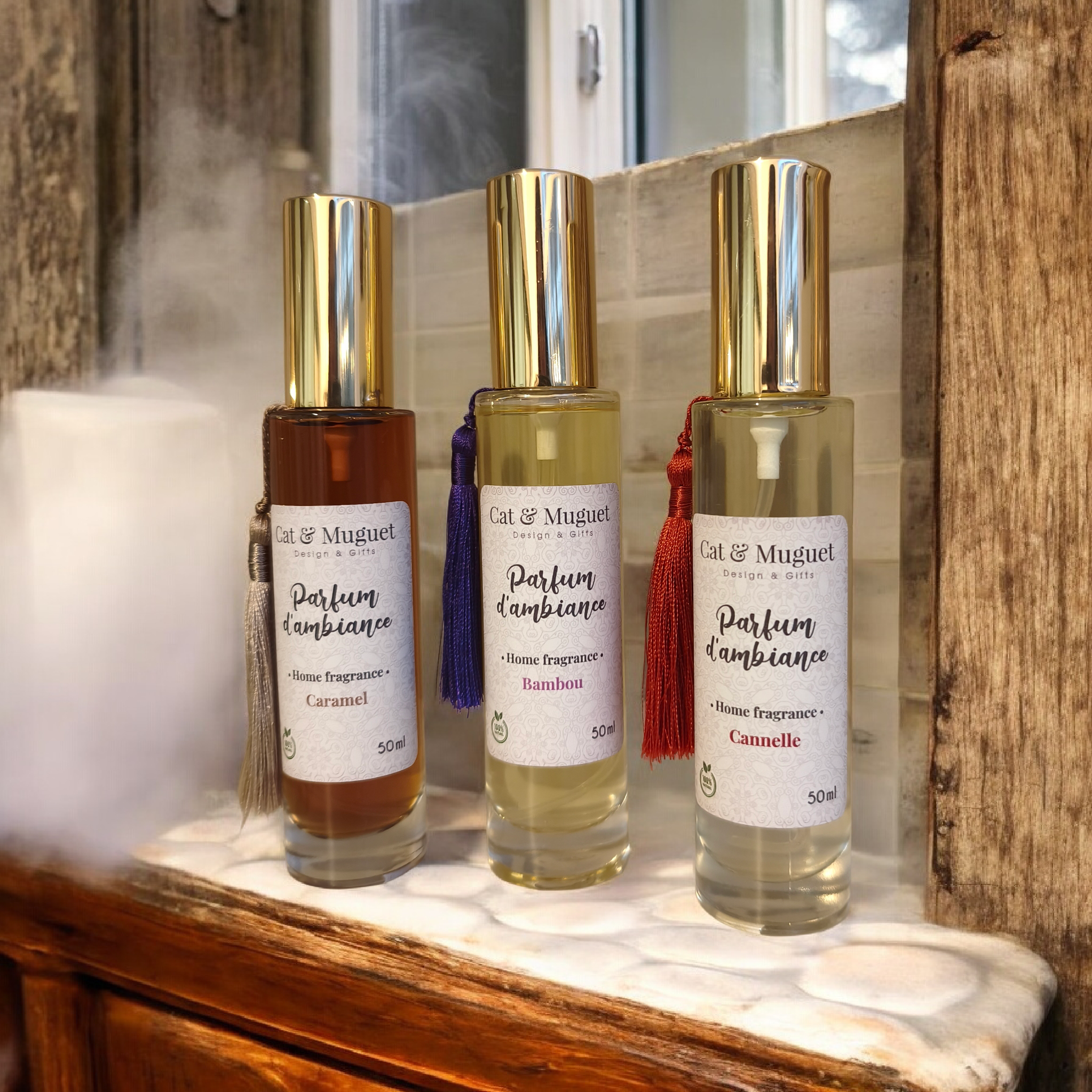 Pack de 3 parfums d'ambiance 50ml : Caramel + Bambou + Cannelle