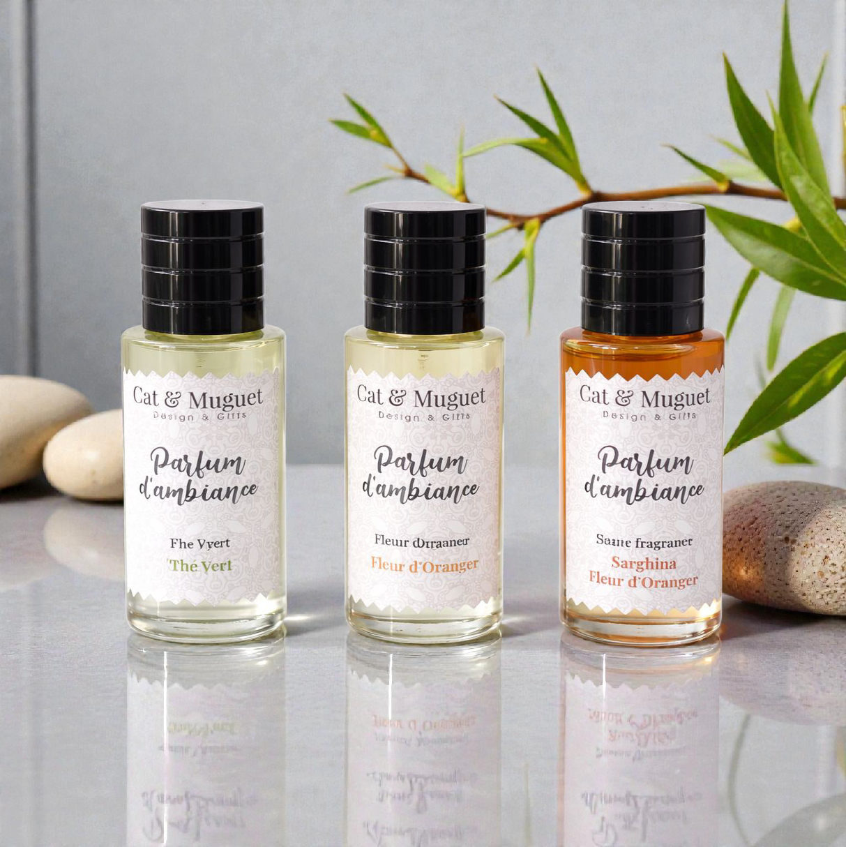 Pack de 3 parfums d'ambiance 50ml : Thé Vert + Fleur d'oranger + Sarghina