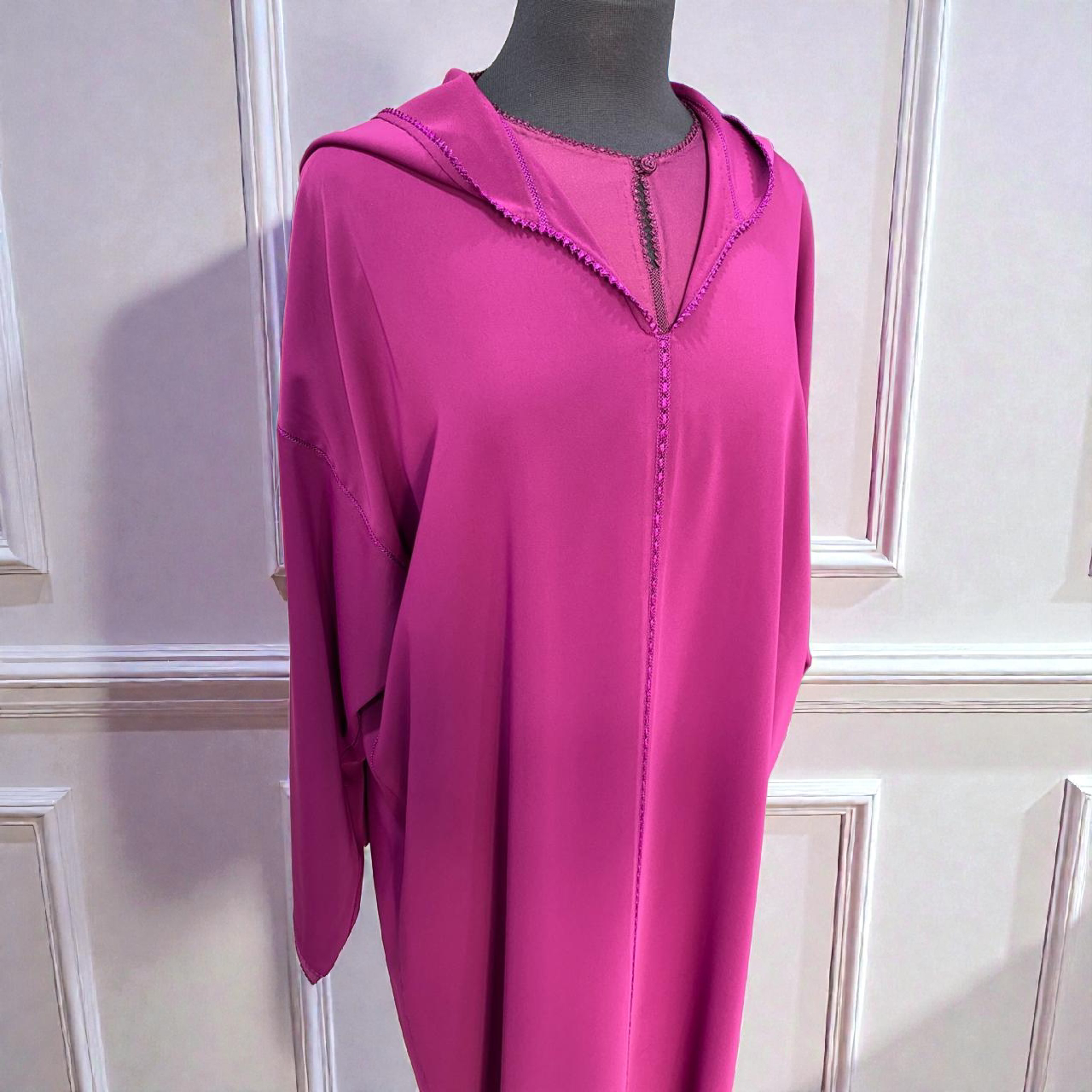 Djellaba crepe 2 pièces Randa - Cerise faite mains