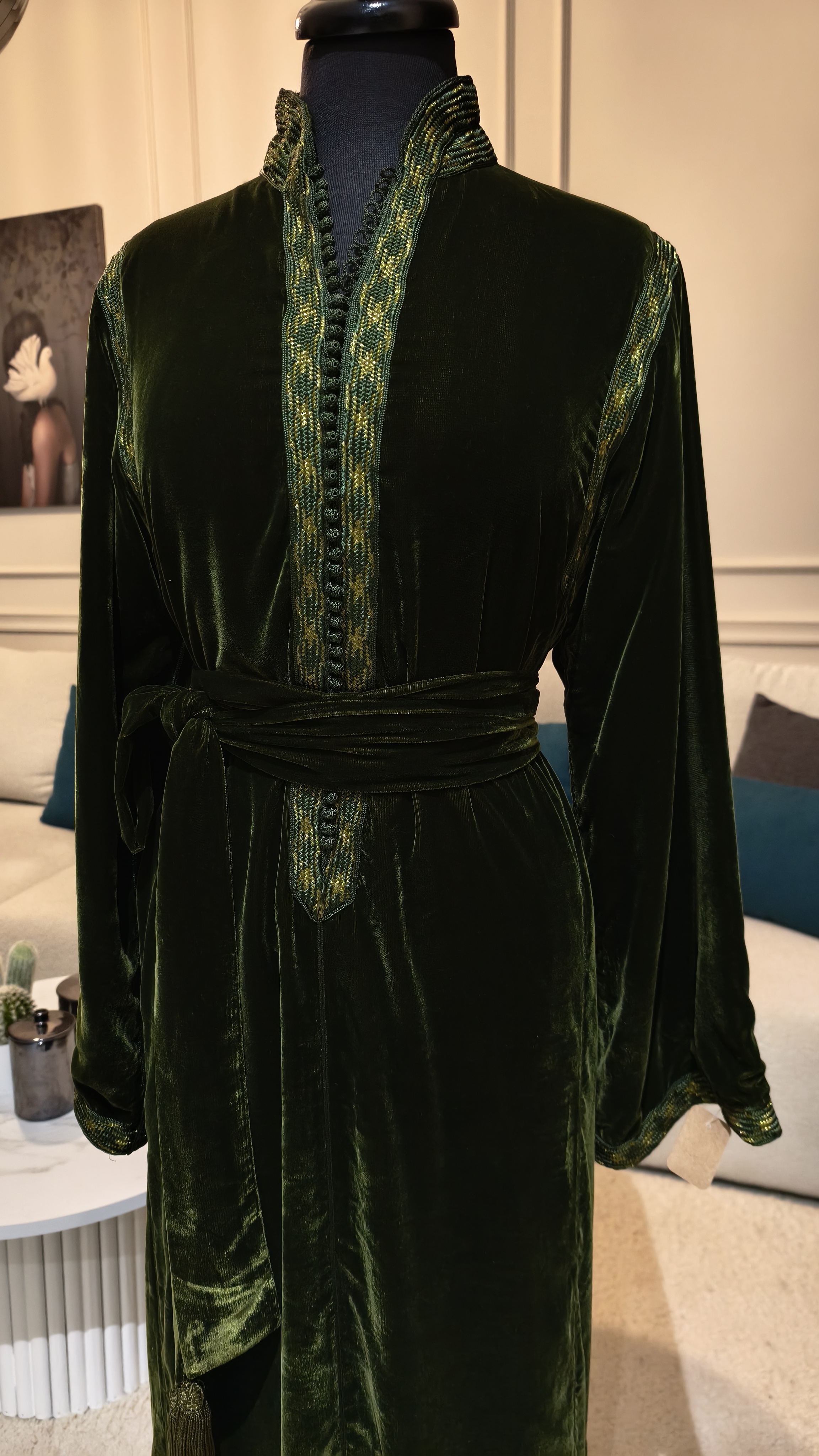 Caftan en velours vert bouteille - fait mains