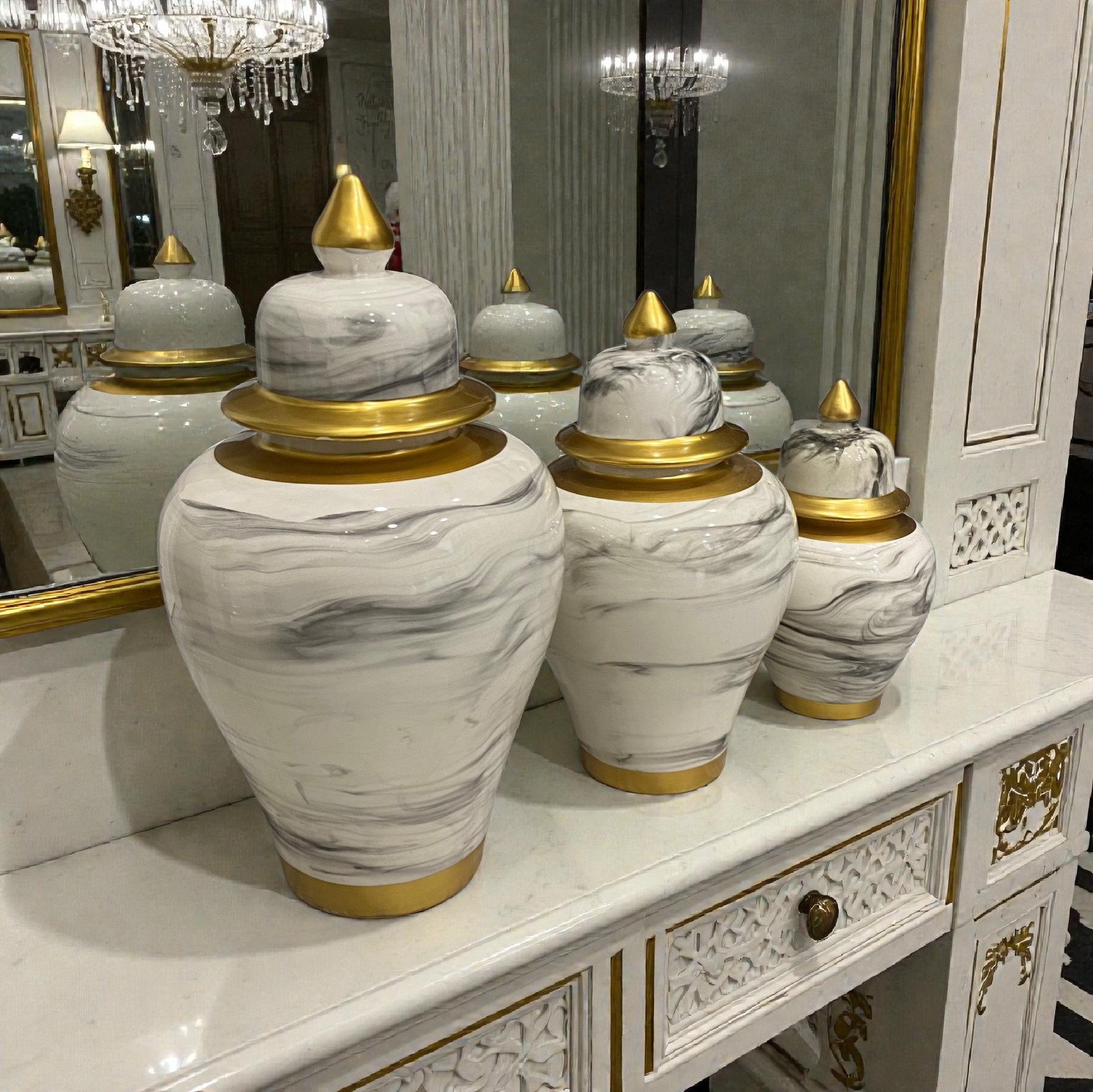 Trio vases blanc gris / doré