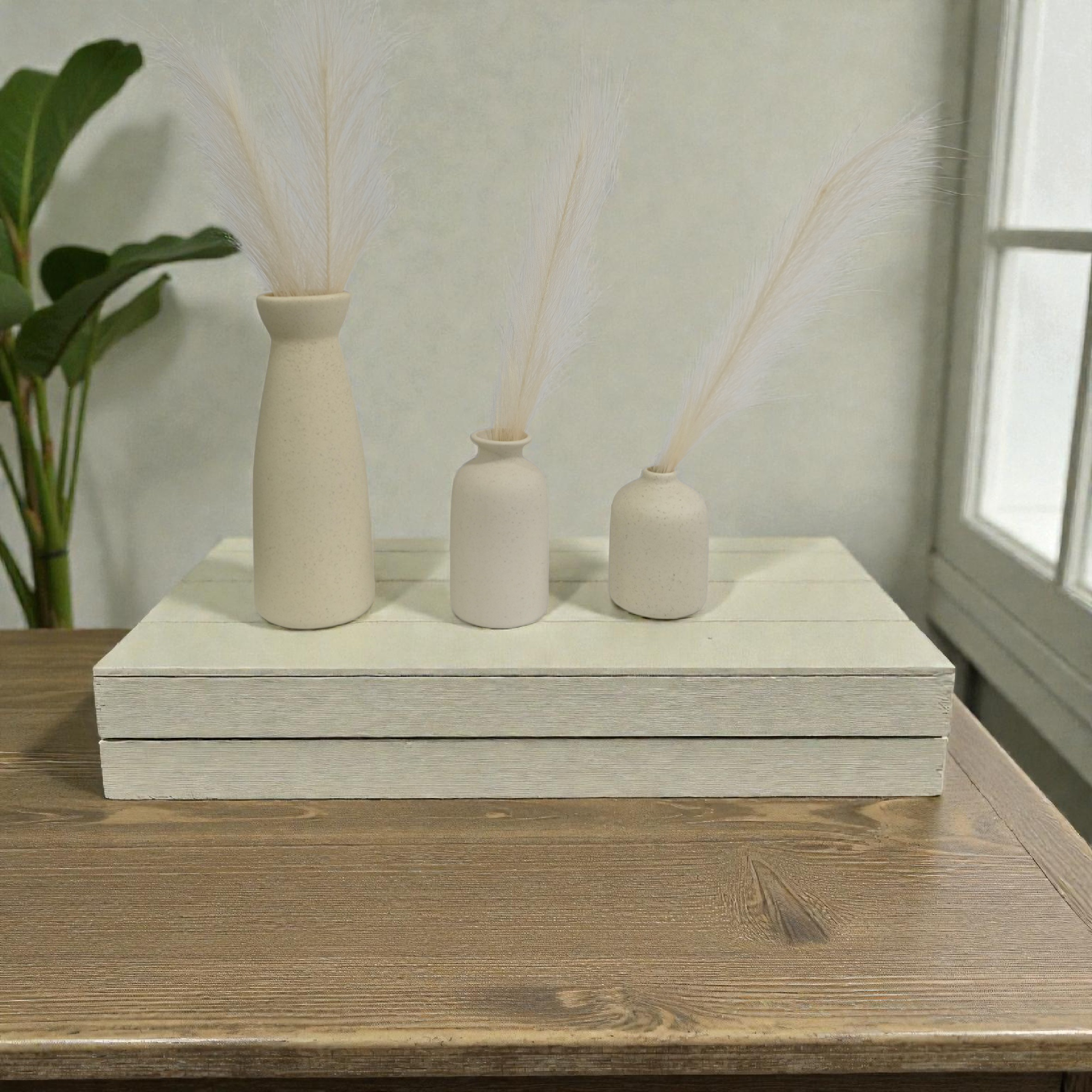 Trio vases blanc cassé