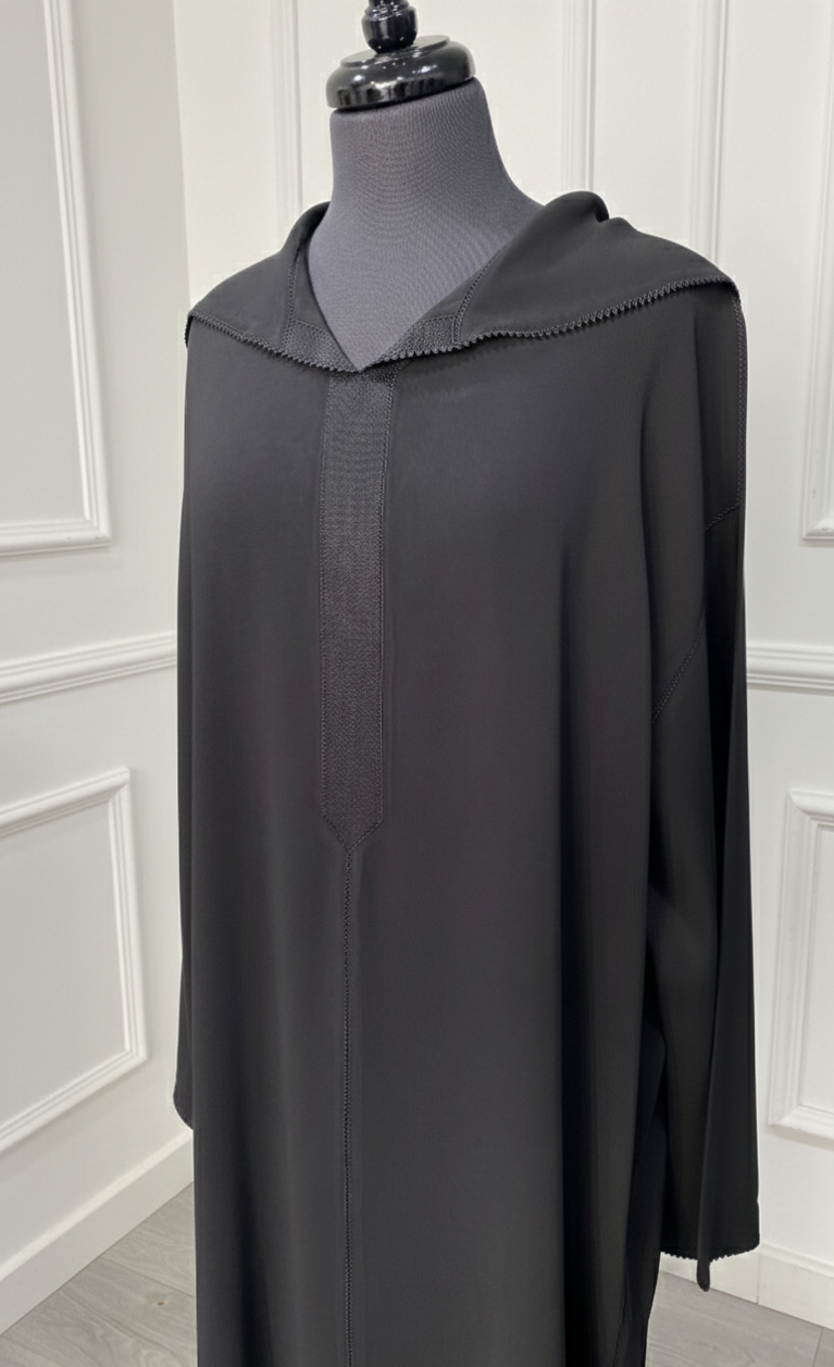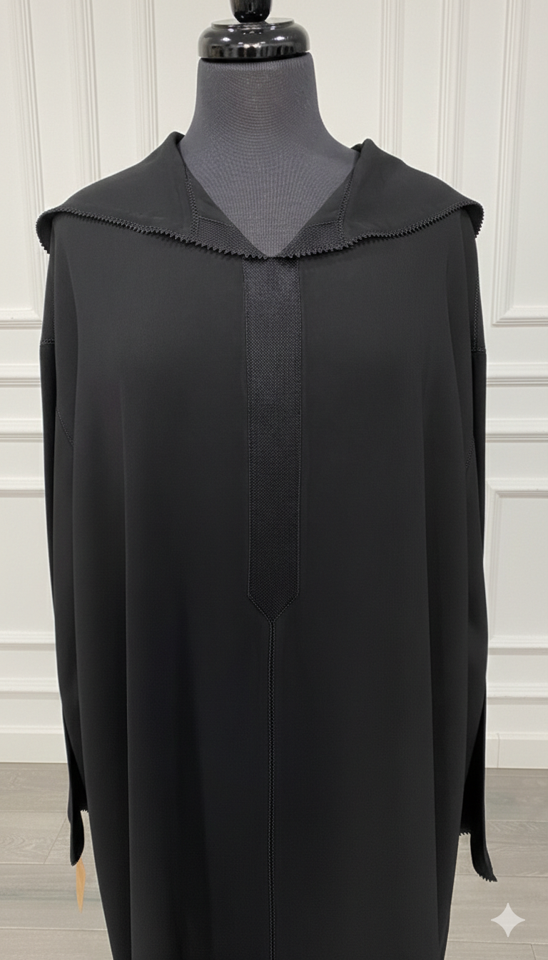 Djellaba crepe noire Randa Hssira