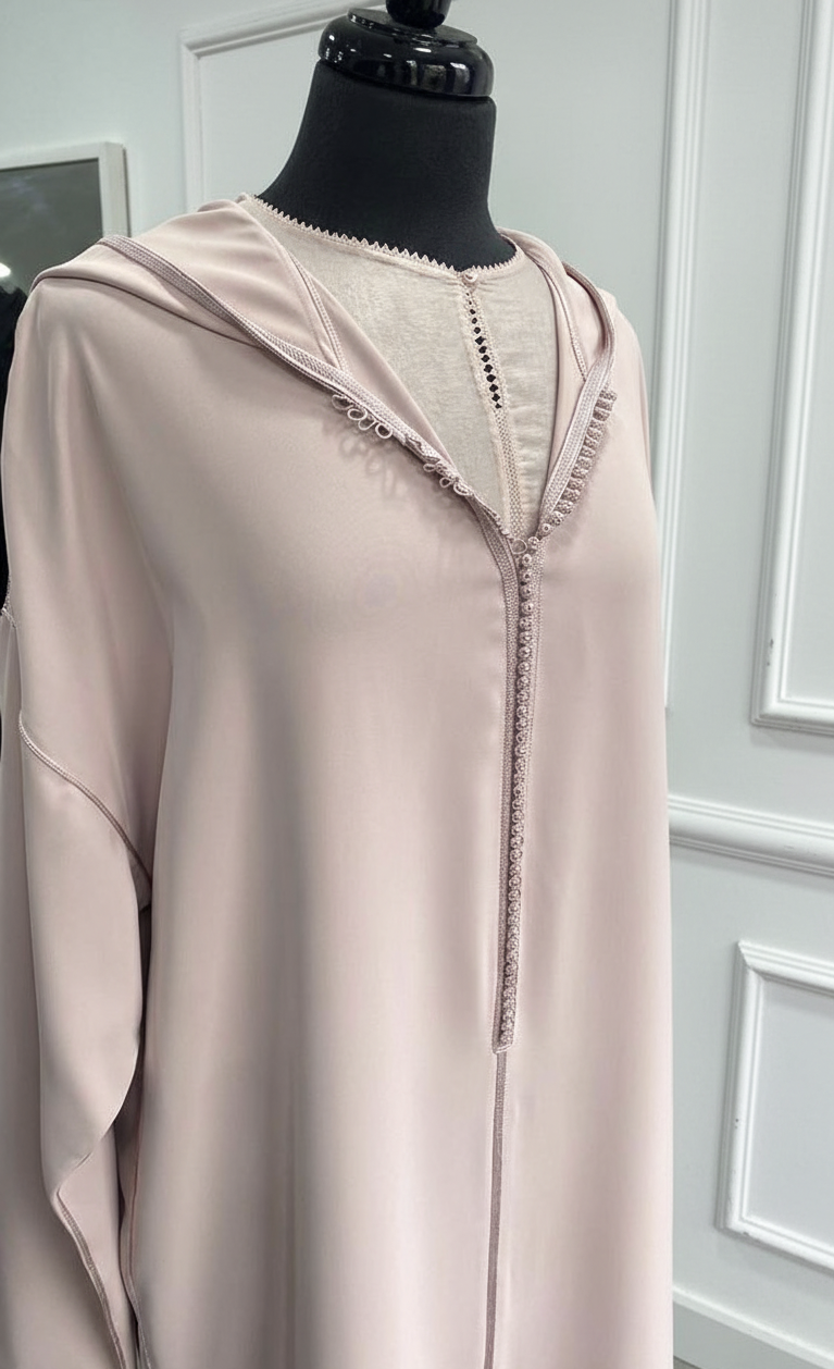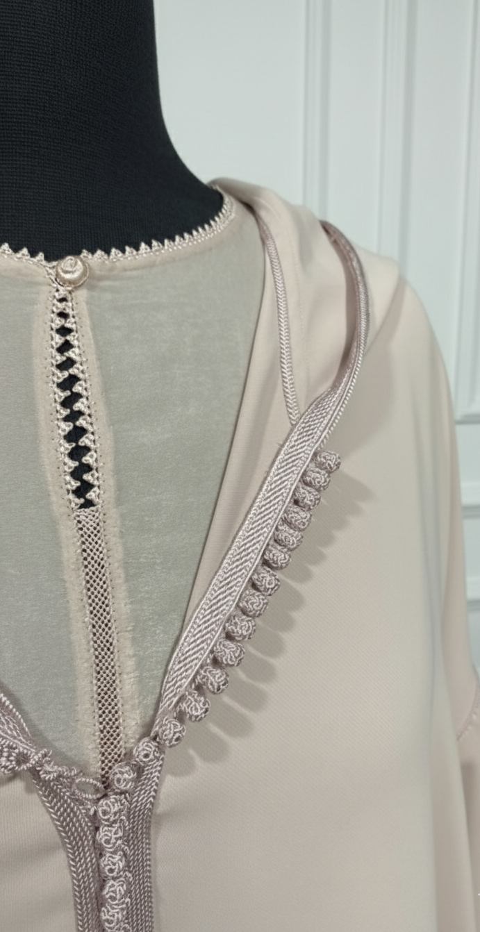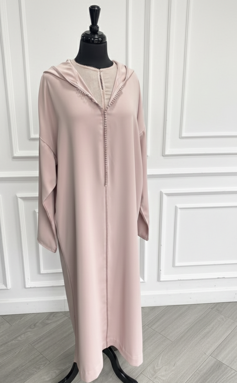 Djellaba crepe 2 pièces rose pale : 39ad + kmiss randa
