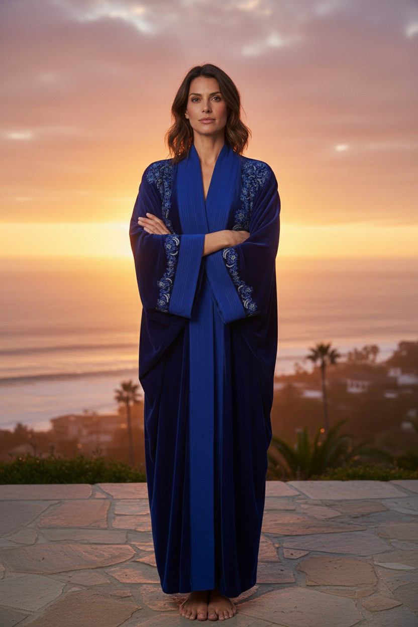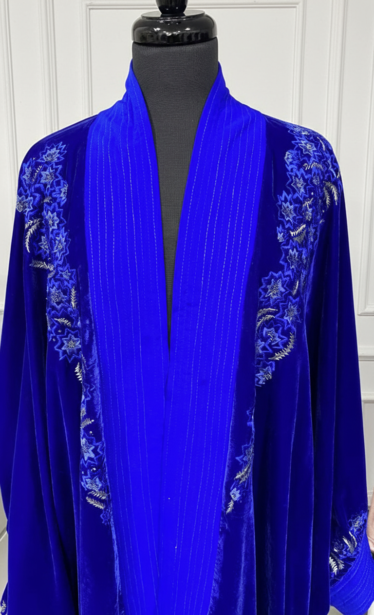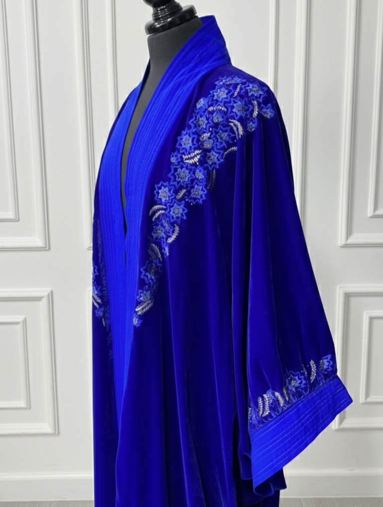 Kimono velours bleu électrique brodé- coupe papillon