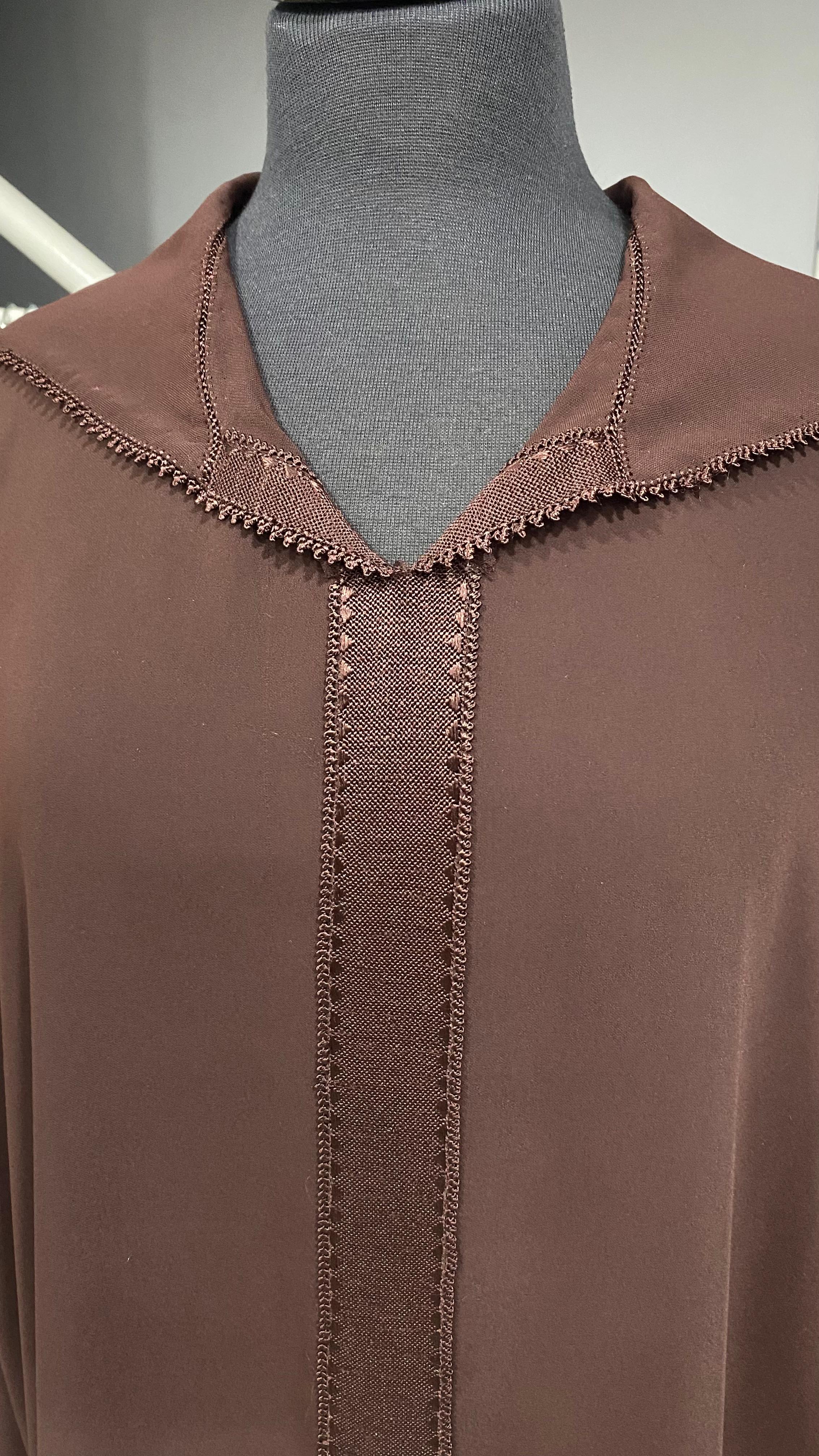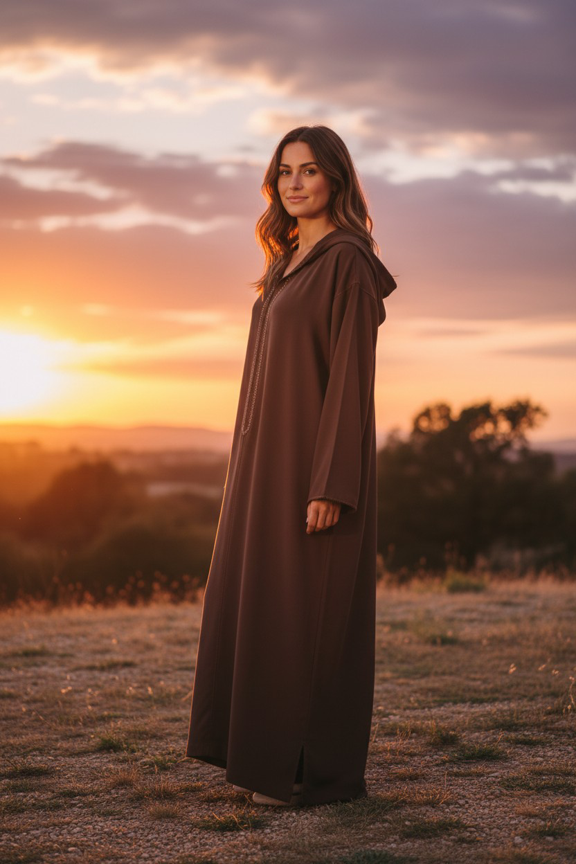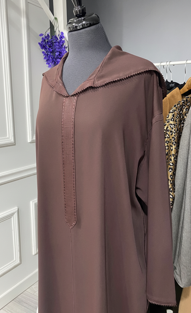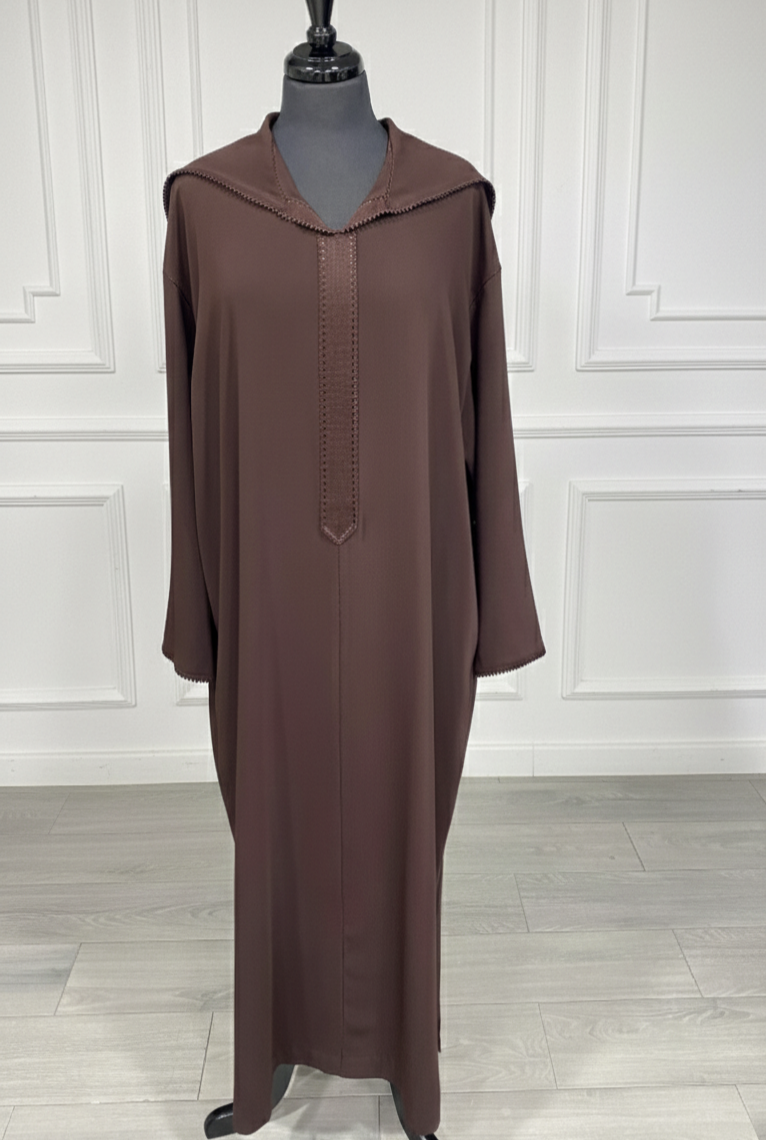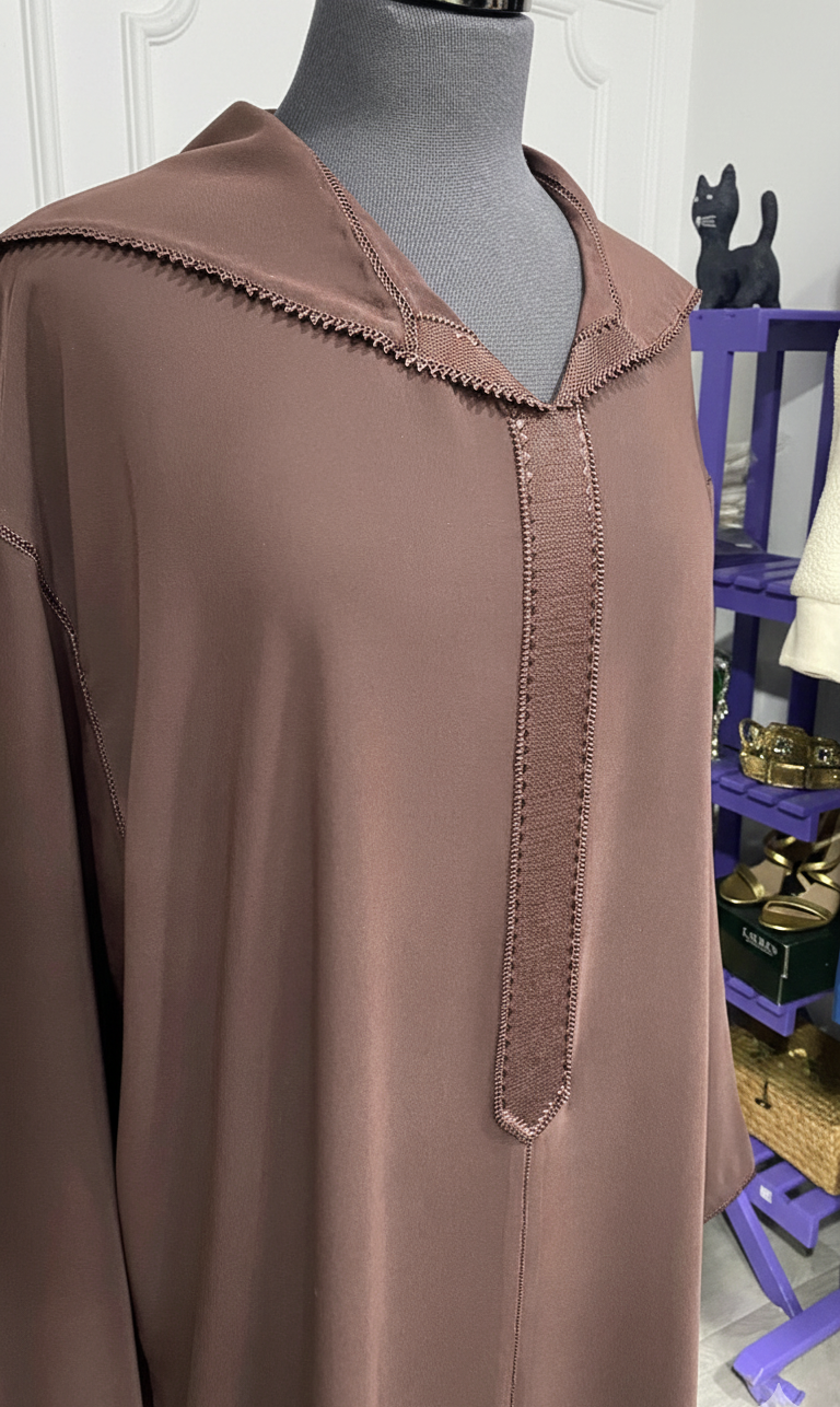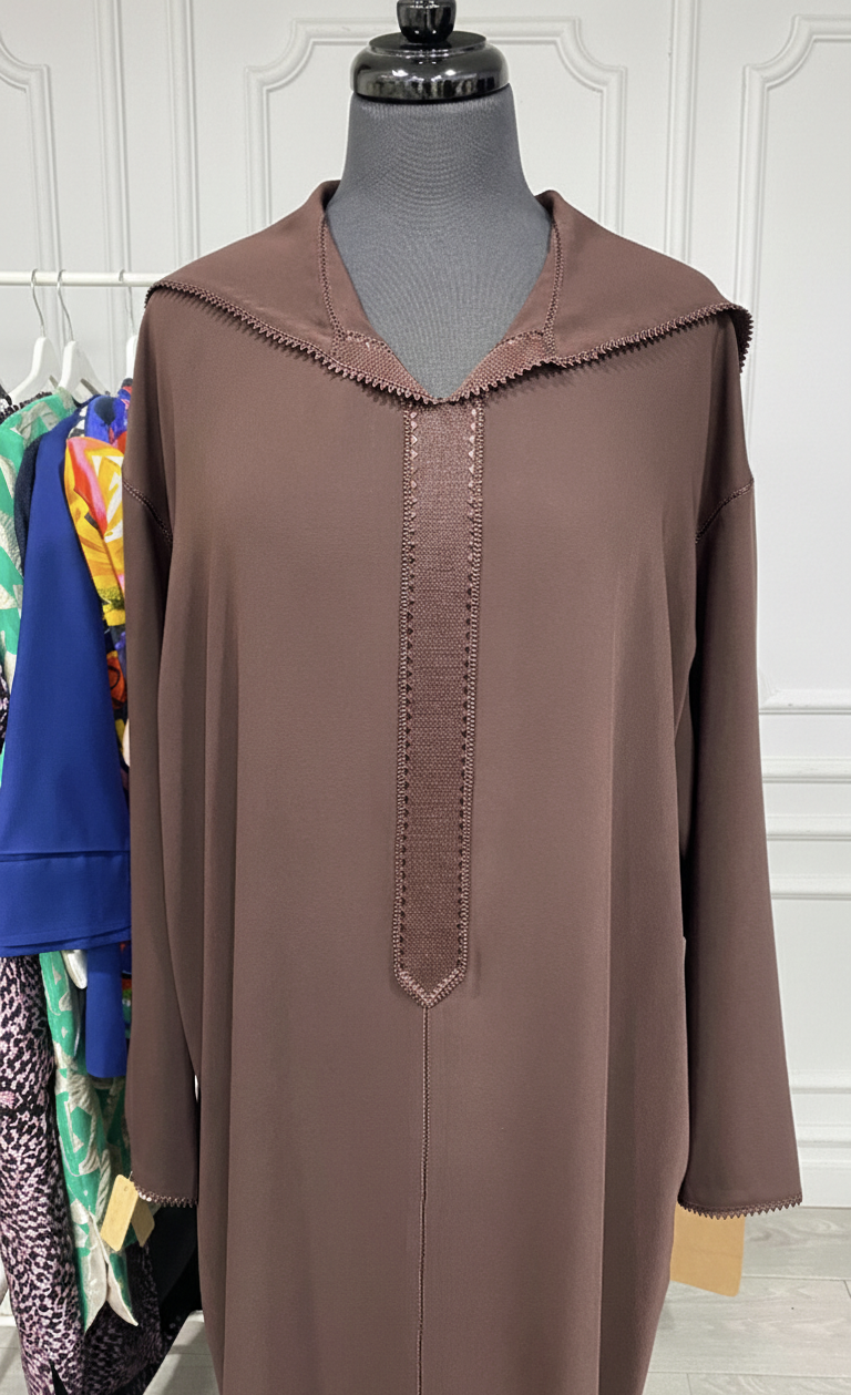 Djellaba crepe marron chocolat Randa Hssira