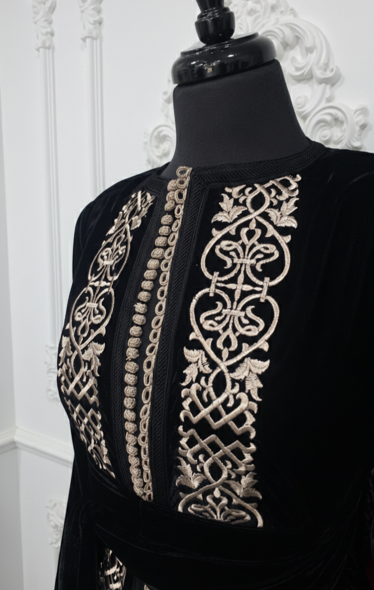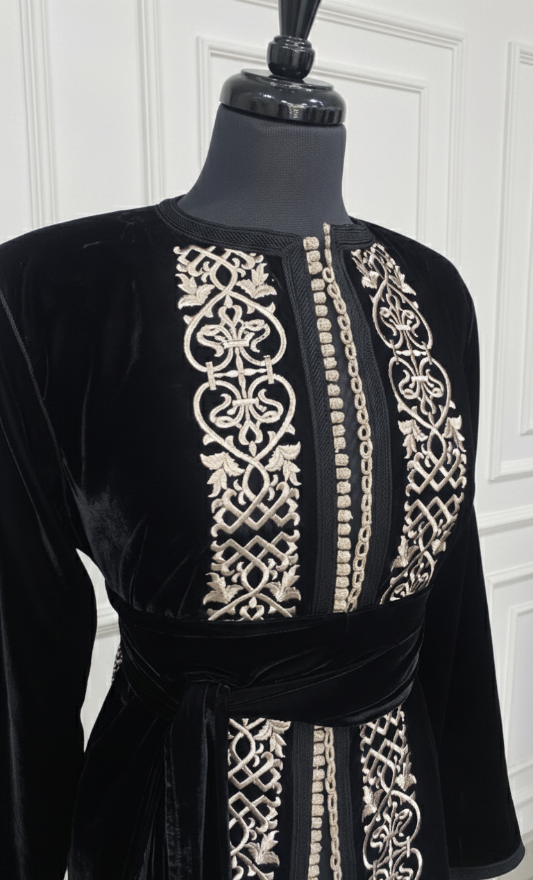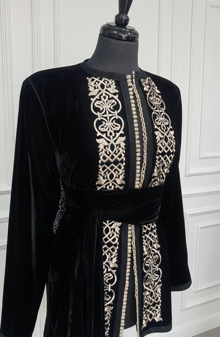 Kimono velours noir court brodé en cartier + ceinture