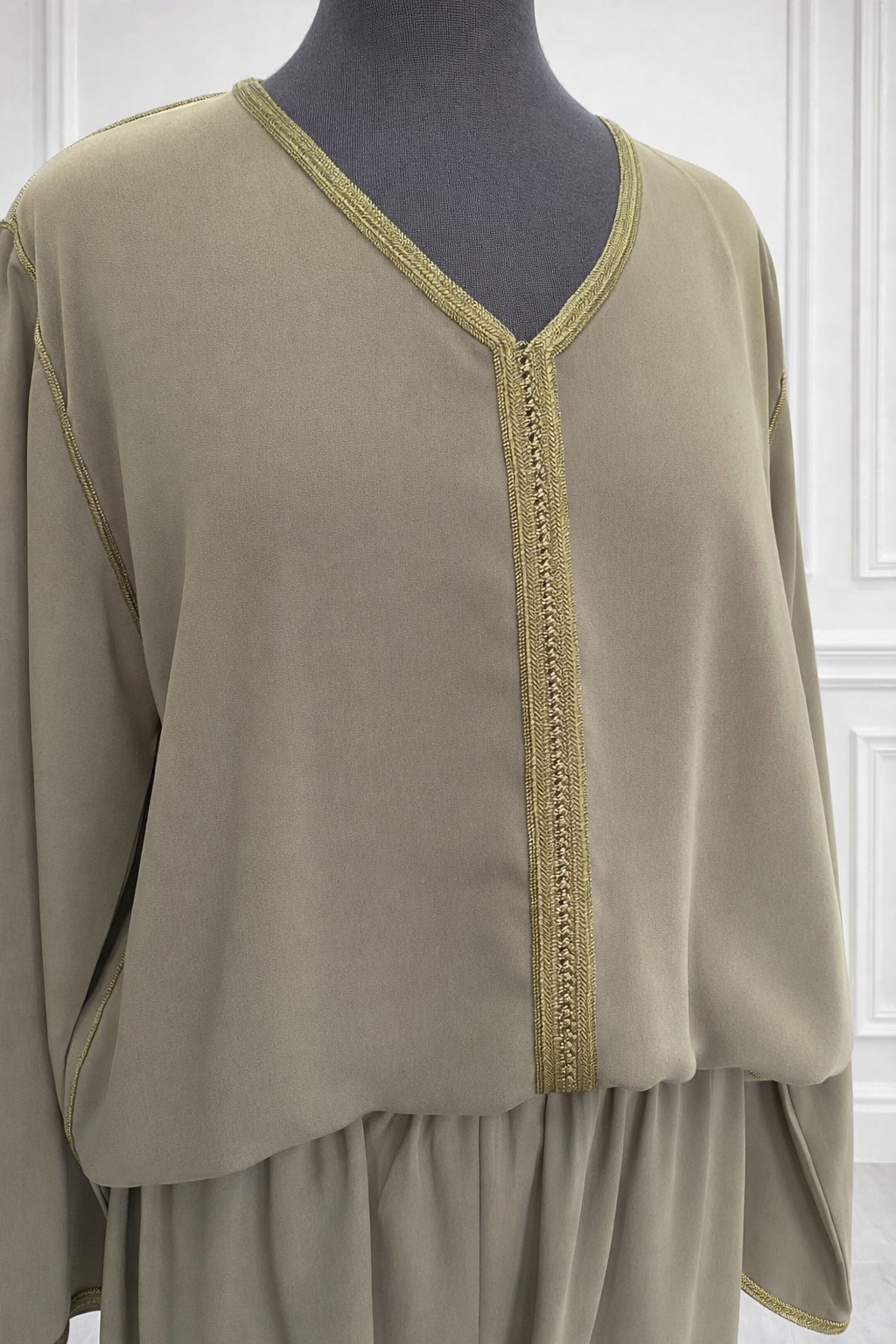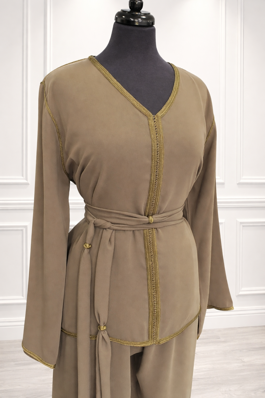 Kimono velours beige kaki doux - interieur orange + ensemble + mejdoul